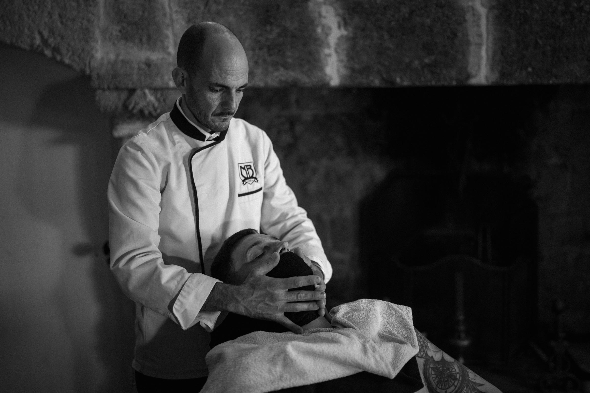 Formé aux traditions du barbier classique, Julien Lebobe perpétue un savoir-faire familial transmis de génération en génération. Son rasoir droit est sa signature — geste précis, rituel immuable.